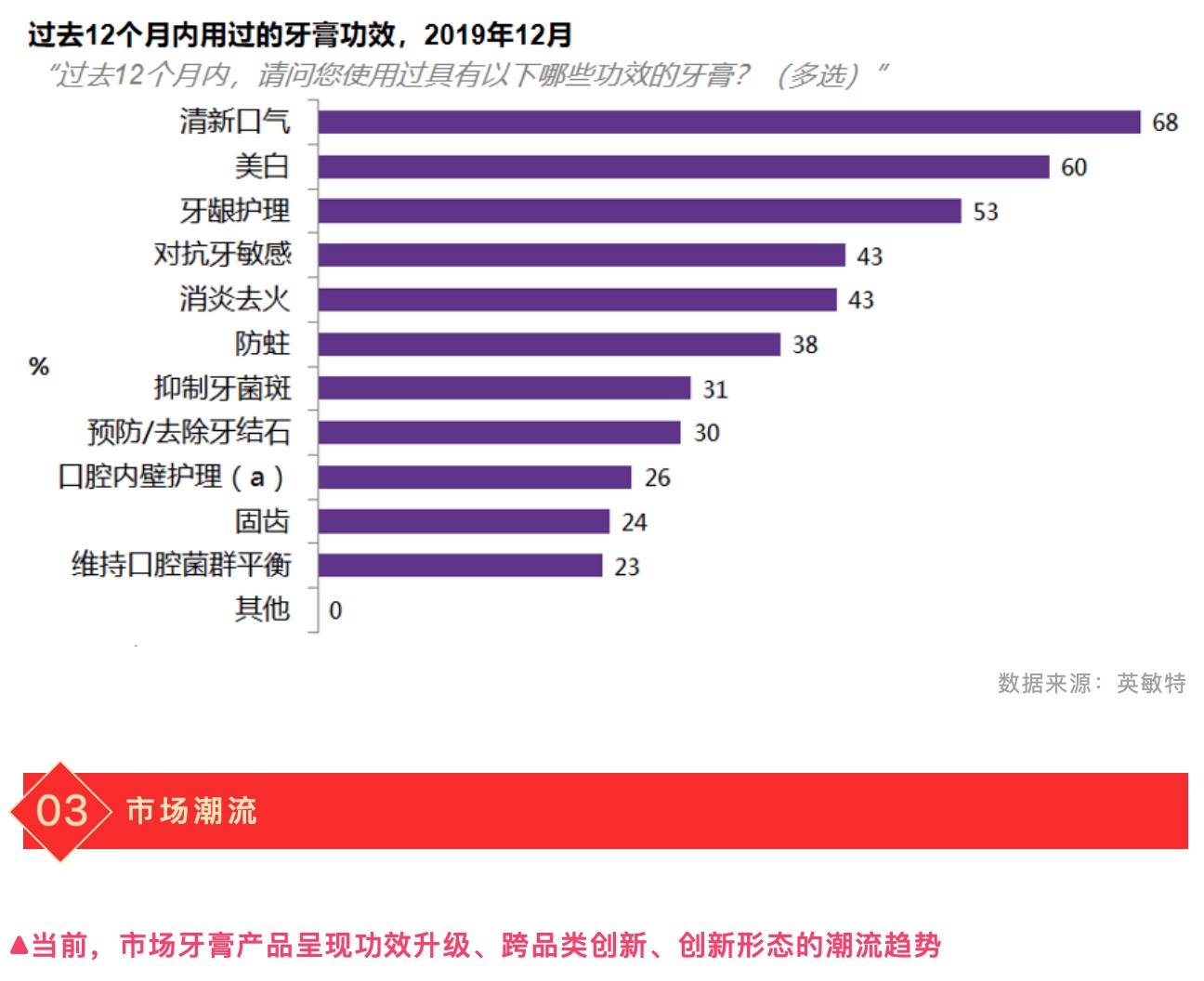 全口腔護理、即時美白、多效合一的功效升級口腔護理產(chǎn)品涌現(xiàn)市場。