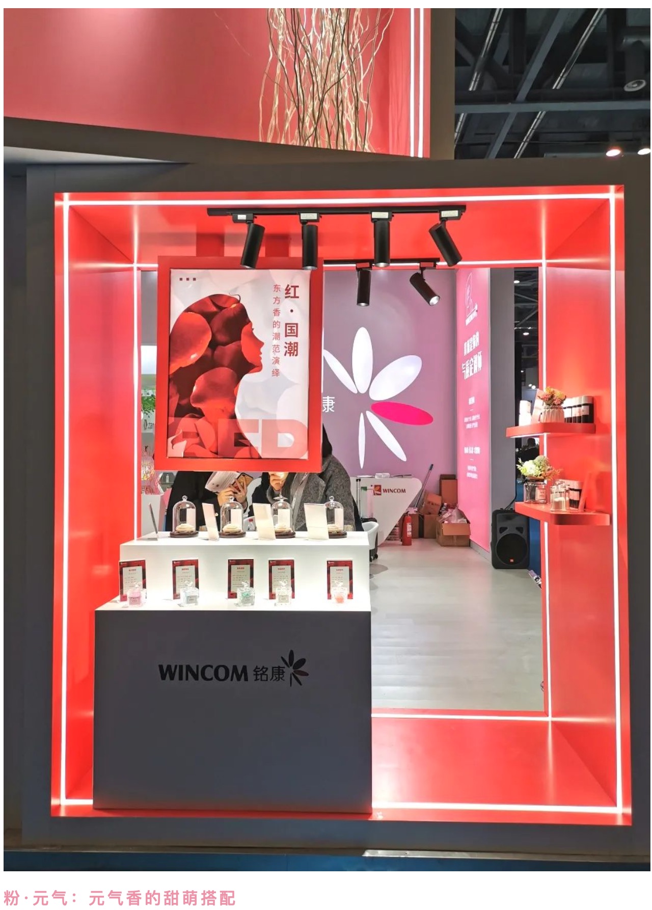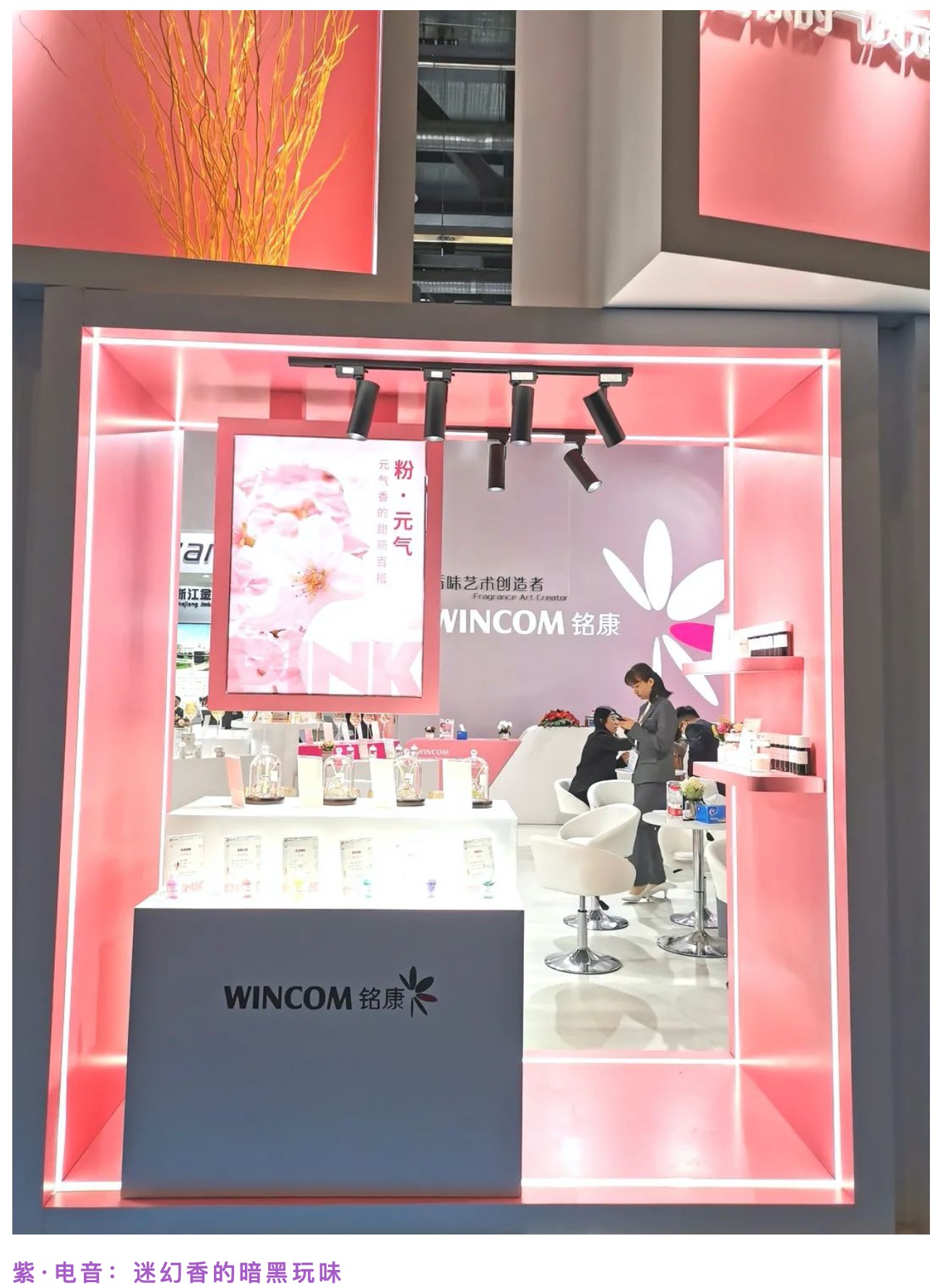108平方米的展位面積,以時(shí)尚粉和典雅白為主色調(diào),簡(jiǎn)潔純粹的外觀設(shè)計(jì),以及高端大氣的品牌形象,將空間裝扮的極富個(gè)性。展位上創(chuàng)新流行的香型、齊全的香精產(chǎn)品種類(lèi),讓客商直觀地了解銘康發(fā)展理念及產(chǎn)品優(yōu)勢(shì)。