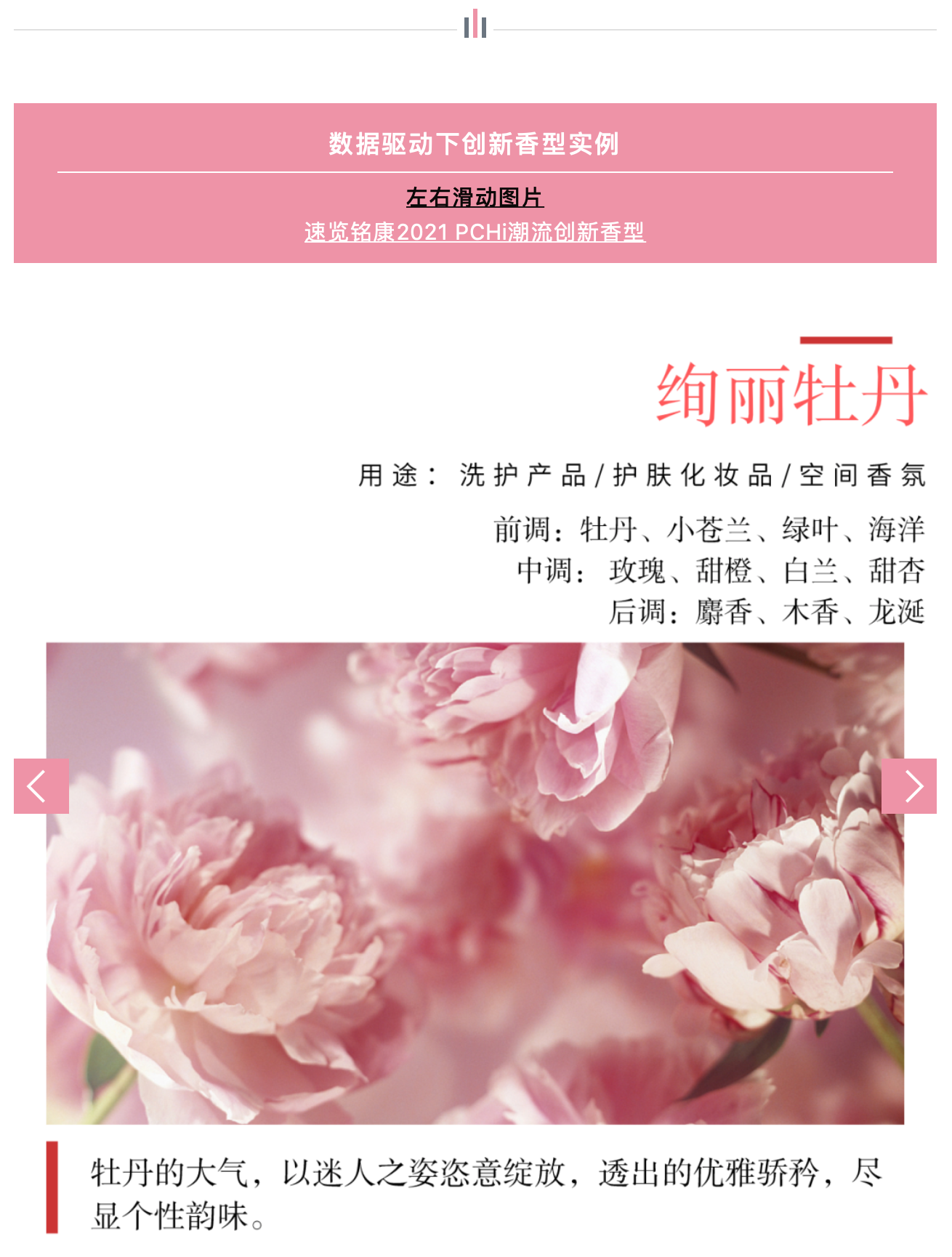 近年來,銘康利用大數(shù)據(jù)分析,充分挖掘市場(chǎng)數(shù)據(jù),建立各產(chǎn)品品類的分析模型,通過對(duì)各品類、各渠道消費(fèi)者的香型喜好度的采集,結(jié)合數(shù)模智能深度分析算法,準(zhǔn)確預(yù)測(cè)香型的流行趨勢(shì),并與多年積累完整的香精庫的匹配,達(dá)到快速的產(chǎn)品研發(fā)和客戶需求的響應(yīng)并給予香型選擇、賣點(diǎn)提煉等決策上的參考,提升客戶新品投放市場(chǎng)成功率,更快、更優(yōu)、更好的為行業(yè)服務(wù),助力企業(yè)市場(chǎng)競(jìng)爭(zhēng)力,實(shí)現(xiàn)共同的價(jià)值增值。